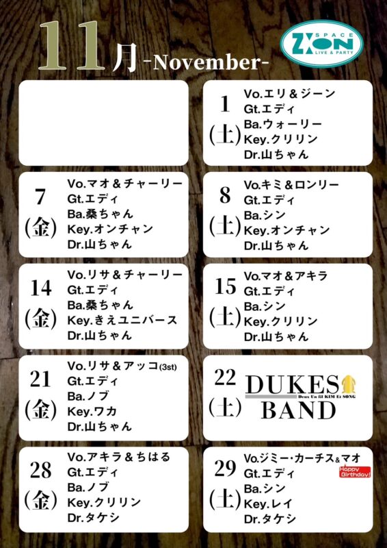 こんばんは、スペースジオンです。 当店の、2025年11月のスケジュールをお伝えいたします。 11月も、当店を宜しくお願い申し上げます! スペースジオン ネットからのご予約はコチラ ホットペッパーグルメ https://www.hotpepper.jp/strJ001168799/ 食べログ https://tabelog.com/kyoto/A2601/A260301/26034117/ スペースジオン 電話番号:075-551-2777