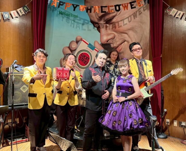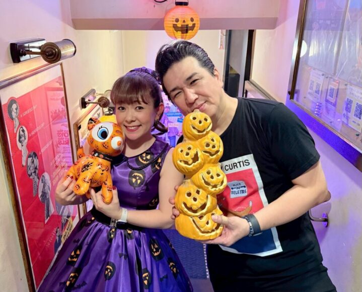 でん!ハロウィングッズを持ち、はい、チーズ♪のマオちゃん&ジミー・カーチスなのでした!大いに盛り上がった一夜、誠にありがとうございました!