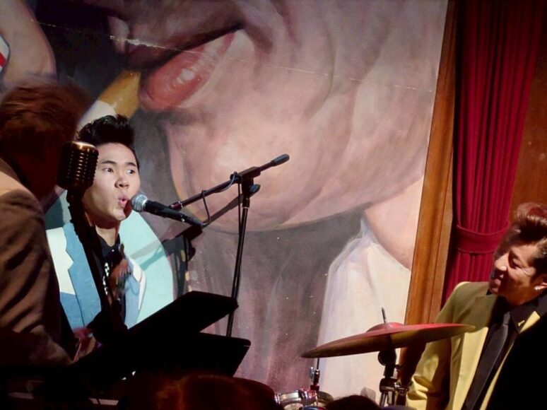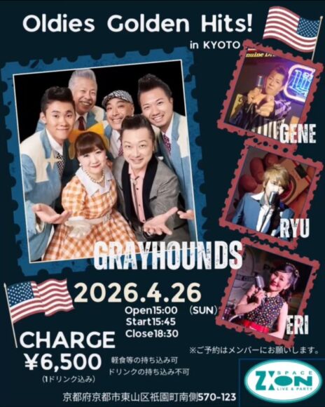 昨日、4/26(日)の当店は、なんともスペシャルな貸切イベントでございました! 博多のエリちゃん主催!大人気のオールディーズグループ、グレイハウンズ、スペースジオン初登場! ボーカル陣に、女性ボーカル:エリちゃん、男性ボーカル:ジーン、男性ボーカル:リュウ コチラのメンバーが参加!というなんともスペシャル極まる一大イベントでございましたよ~♪♪