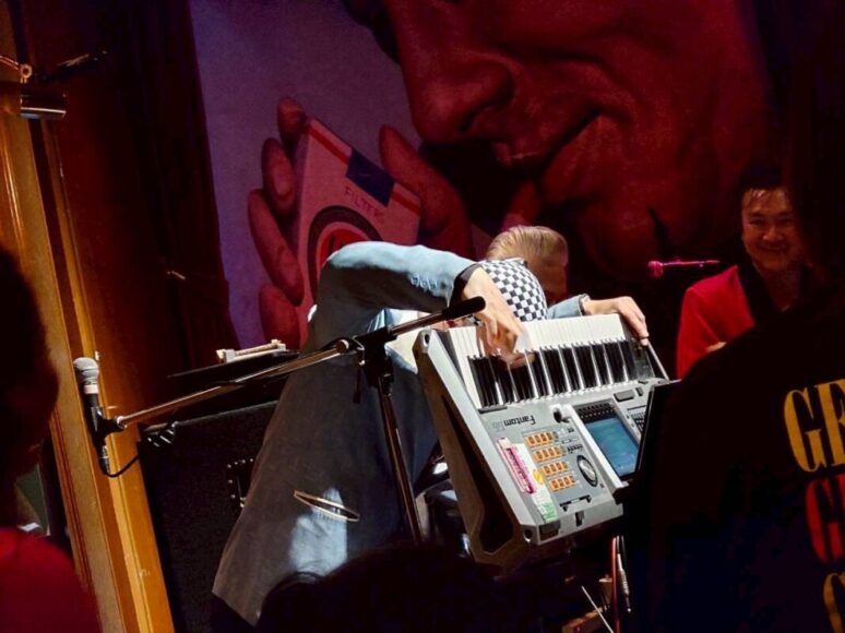 こーんなパフォーマンスもしちゃいます!なのです。流石の大活躍キーボーディスト、さっきー、なのです!!
