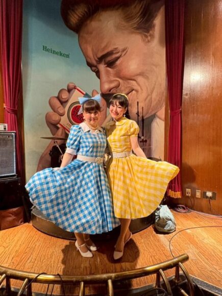 演奏終了後の、エリちゃんが「どーしてもこのポーズで撮りたい!」と言っていた写真撮影の図が、こちらでございます笑!うーむ、ザ・オールディーズ!な雰囲気♪